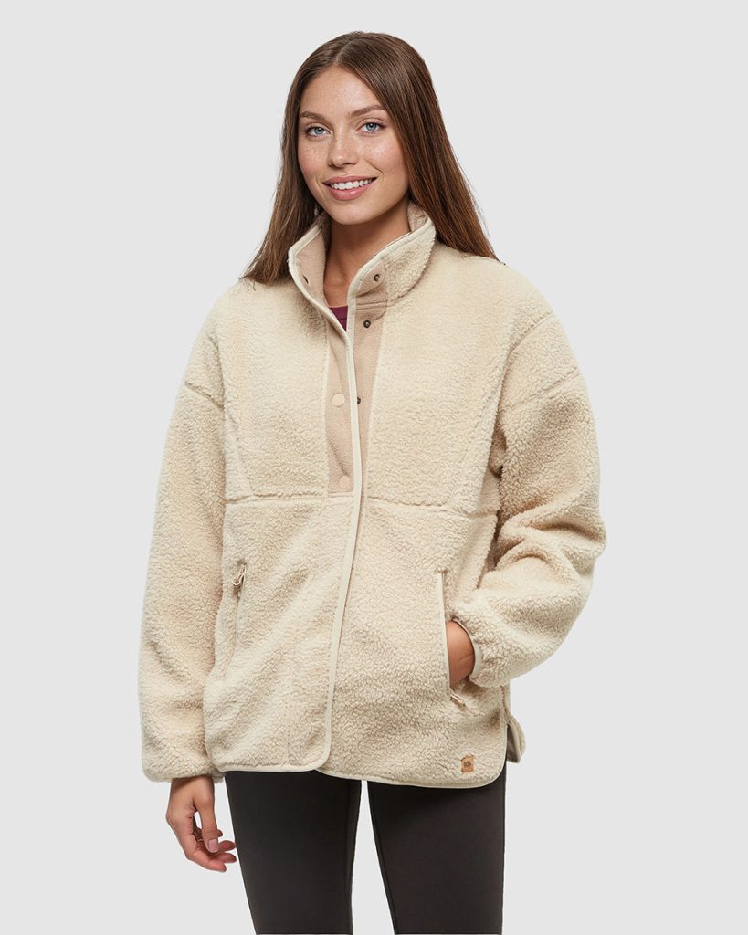 This everyday fleece works as hard as you chill — with a mock neck, zippered pockets, a full snap front, and sherpa-bonded to microfleece fabric that keeps warmth in and the cold out.