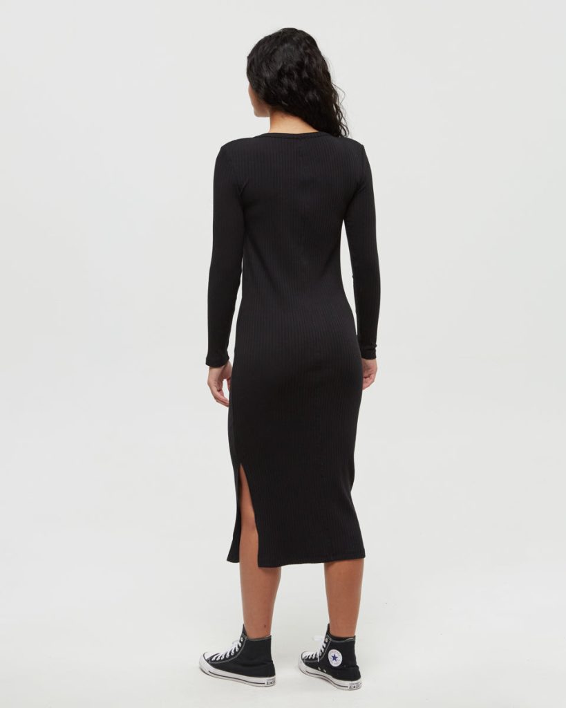 This long, ribbed Henley dress is made from a comfy modal–organic cotton blend with just enough stretch to move with you. Perfect under a vest, a cardigan, or nothing at all if the weather holds up.